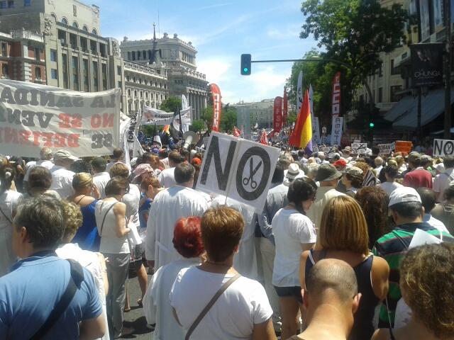In Madrid, as well as in other Castilian, Aragonese and Canarian cities, the White Tide brought many thousands to the streets, demonstrating once again the extreme unpopularity of the anti-social measures of the reactionary Rajoy government.